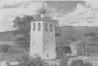 Колокольня и руины Мальского монастыря.