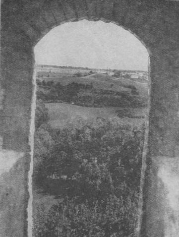 Крепость на Жеравьей горе вначале была деревянной, с одной каменной башней Луковка. Башня эта сохранилась до наших дней. Она стоит внутри крепости вплотную к ее северо-восточной стороне (1) *. Наружный диаметр башни по низу около 9,5 метра, высота почти 13 метров. Под башней находится подвал, в котором хранились боеприпасы. Стены сложены на известковом растворе из местного известняка, называемого плитой. «Полом» и «потолком» ярусов служили плоские деревянные помосты (перекрытия); в ярусы попадали через люки по приставным лестницам. В башне было четыре яруса бойниц. Одна бойница четвертого яруса могла обстреливать пространство перед крепостью, все остальные бойницы были направлены внутрь крепости.