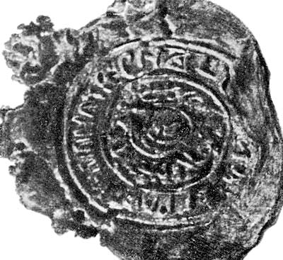 На рис. 68 мы приводим еще одну пугачевскую печать, якобы принадлежавшую «Чике-Зарубину, сподвижнику Пугачева». Однако, что именно на ней написано, нам разобрать не удалось. В центре печати, по-видимому, изображен полумесяц внутри которого – кисть человеческой руки (вероятно, с двуперстием).