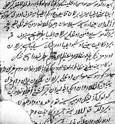 Рис. 71. Пугачевское предписание о воинском наборе, написанное арабицей на татарском языке. Взято из [5], вклейка между страницами 288 и 289
