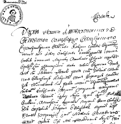 Рис. 73. «Указ Пугачева. Копия. Фрагмент» [18], с. 171.