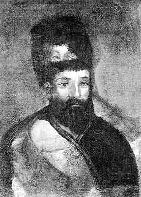 Рис. 75. Портрет Пугачева, написанный в XVIII веке, поверх портрета императрицы Екатерины II. Имя художника неизвестно. Хранится в Государственном Историческом музее г. Москвы. Взято из [11], т. 1, с. 351