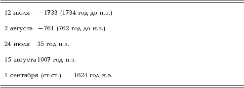 Оказывается, ни одного нового удовлетворительного решения при этом не появляется. Вот полный перечень таких решений на интервале от –3000 года до +2000 года.