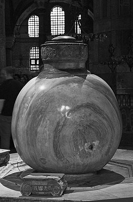 Рис. 1.23. Один из мраморных сосудов в Большой Софии. Вероятно, был предназначен для освящения воды. Оба сосуда установлены султаном Мурадом III в конце XVI века. Фотография 2006 года.