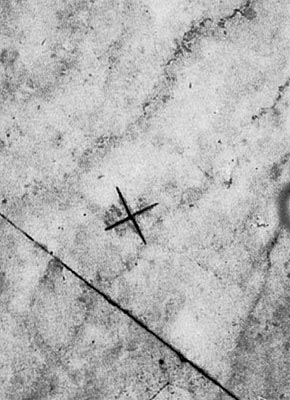 Рис. 1.28. Маленький крестик на каменном полу Большой Софии. Такие крестики отмечают проекции центров куполов. Они были сделаны при постройке храма. Взято из [102], с. 14.