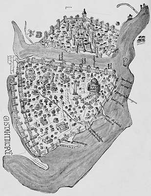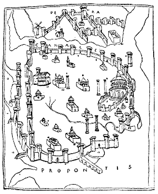 Рис. 1.33. Прорисовка самой старой уцелевшей карты Царь-Града начала XV века. Взято из [41], с. 134.