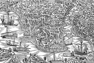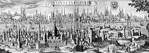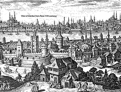 Рис. 1.44. Вид Стамбула на рисунке XVII века. Взято из [110], задняя обложка книги.