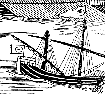 Рис. 1.43. Фрагмент. Корабль со сфинксом и христианским крестом на флагах. Взято из [50], т. 5, с. 138–139.