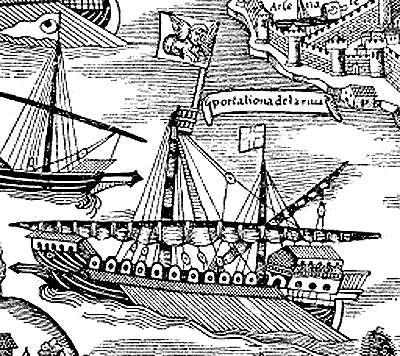 Рис. 1.42. Фрагмент. Корабль с османскими полумесяцами на флагах. Взято из [50], т. 5, с. 138–139.