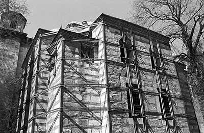 Рис. 1.57. Вид церкви Магомета II Завоевателя вблизи. Храм, постепенно разваливается. Чтобы уберечь, его со всех сторон стянули железной арматурой. Фотография 2006 года.