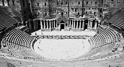 Рис. 1.62. «Античный» цирк в сирийском, городе Босра. Согласно нашей реконструкции это – один из старых храмов родового (царского) христианства эпохи XIII–XIV веков. Возможно, он был построен и в XV–XVI веках, поскольку в Сирии и Египте обычаи родового христианства продержались дольше всего. Фотография 2005 года.
