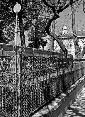 Рис. 3.3. Символическая «могила святого Иисуса» на горе Бейкос – прямоугольный участок земли длиной 17 метров, огороженный решеткой с мелкой сеткой, чтобы молящиеся не могли брать и уносить с собой святую землю. Фотография 2006 года.