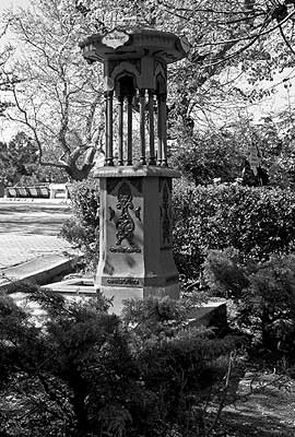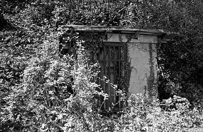 Рис. 3.7. Подлинный источник святого Пантелеймона на склоне горы Бейкос. Сегодня он заключен в бетонную будку, где стоит насос, качающий воду выше, на самую вершину горы. Фотография 2006 года.
