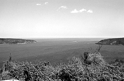 Рис. 3.14. Вид от крепостных стен Ероса на Черное море и начало Босфора. На каком-то из этих двух мысов, отделяющих Босфор от Черного моря, вероятно и находился в XII веке н. э. знаменитый Гефсиманский сад, где Христос с учениками провел тревожную ночь перед приходом предателя Иуды с воинами Пилата. Фотография 2006 года.
