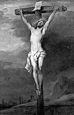 Рис. 3.35. «Распятие». Фламандский мастер Anton van Dyck, 1628–1630 года. Картина хранится в художественно-историческом музее города Вены. Город Иерусалим здесь хорошо виден с Голгофы. Взято из [117], tafel 417.