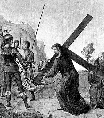 Рис. 3.44. Еще одна картина, изображающая путь Христа на Голгофу. Голландский мастер Juan de Flandes, якобы 1496–1504 гг. Картина хранится в художественно-историческом музее города Вены. Взято из [117], tafel 273.