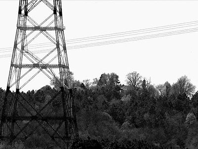 Рис. 3.46. Вид от угла левой крепостной воротной башни Ероса-Иерусалима на «Исусову гору», (гору Бейкос) = Голгофу, на вершине которой находится символическая «могила святого Иисуса» – место евангельской казни Христа. Направление взгляда на вершину Голгофы – чуть правее ближайшей вышки электропередач. Еще правее вдали на горизонте виднеются высотные дома пригородов Стамбула. Сам Стамбул не виден – он находится слишком далеко отсюда. Фотография 2006 года.