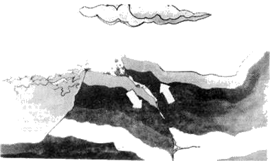 Рис. 40. Поднятие и опускание массы суши во время Потопа изменило геологические характеристики Земли.