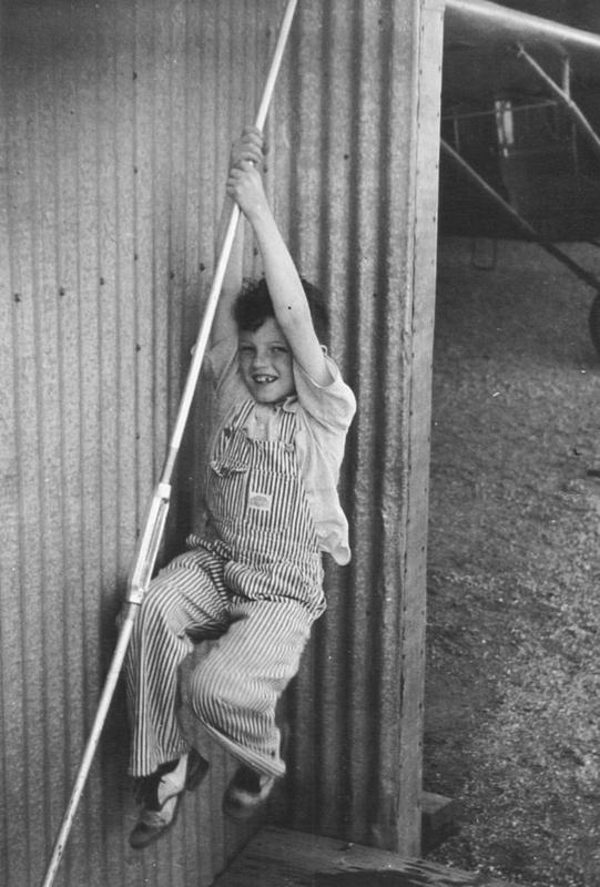 В аэропорту Шони, восемь лет. К тому времени я уже летал – с помощью подставок, которые папа смастерил для педалей, и горы подушек. Свой первый полёт я совершил в пять лет на высокоплане Curtis Robin, видном на заднем плане. (Из архива Гордона Купера)