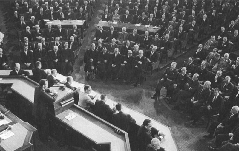 Выступление перед совместным заседанием Конгресса после миссии «Меркурий». «Невозмутимый оклахомец с деревенским акцентом говорил по заметкам, без заранее написанного текста», – написал журнал The New Republic. (Источник: НАСА)