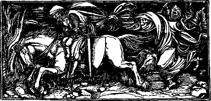 Они достигли вершины холма и спустились по его склону на другую сторону, где дорога шла долиной. Несчастные беглецы двигались молча, то и дело обреченно оглядываясь назад. Они не проехали и мили, как увидели шлемы своих преследователей на вершине холма. Но что такое миля, разве это расстояние для сытых лошадей? Однако что еще оставалось делать беглецам, как не пришпоривать своих загнанных коней?
