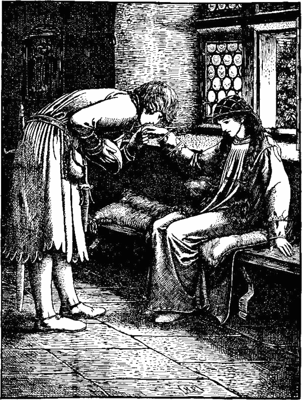 Из окон, расположенных над потолком длинными рядами, струились потоки света. В конце зала, где располагался очаг с полыхающими поленьями, сгрудилась группа придворных. Они были разодеты в шелк и бархат, золотые цепи украшали их грудь.