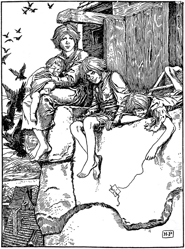 Они сидели там точно так же, как маленькие дети в городе могли бы сидеть на пороге дома своего отца, и, как воробьи могли бы кружить вокруг ног городских ребятишек, так и стаи грачей и галок кружились у ног этих рожденных в воздухе существ.
