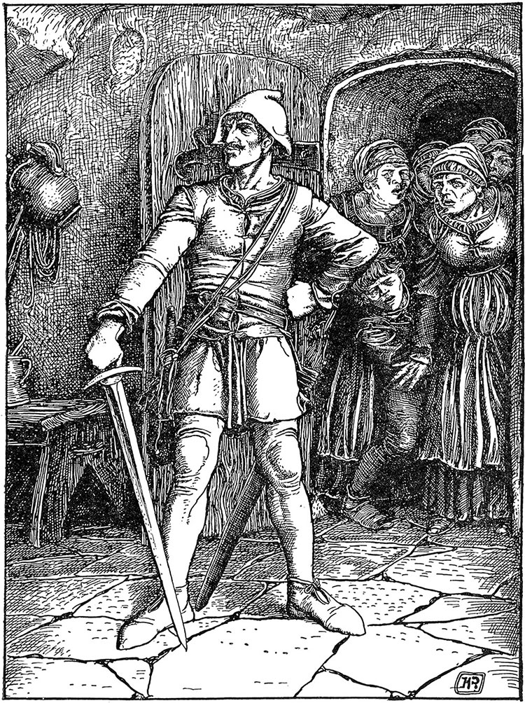 – Черт возьми! – воскликнул он. – Ты с ума сошла, что говоришь мне такие вещи? Если бы тебя услышал наш господин барон, он отрезал бы тебе язык, а мне отрубил бы голову. Неужели ты думаешь, что я вмешаюсь в такое дело? Послушай, эти гордые властные бароны гоняют нас туда-сюда; они бьют и убивают нас, как им заблагорассудится. Наши жизни для них стоят не больше, чем жизнь какой-нибудь моей черной свиньи. Зачем мне лезть в петлю, когда они стригут друг друга? Чем меньше их будет, тем лучше для нас, говорю тебе. У нас, бедных людей, и так достаточно тяжелая жизнь, чтобы рисковать, помогая им выпутаться из бед. Как ты думаешь, что будет с нами, если барон Генрих узнает о том, что мы рассказали о его делах Рыжебородому?