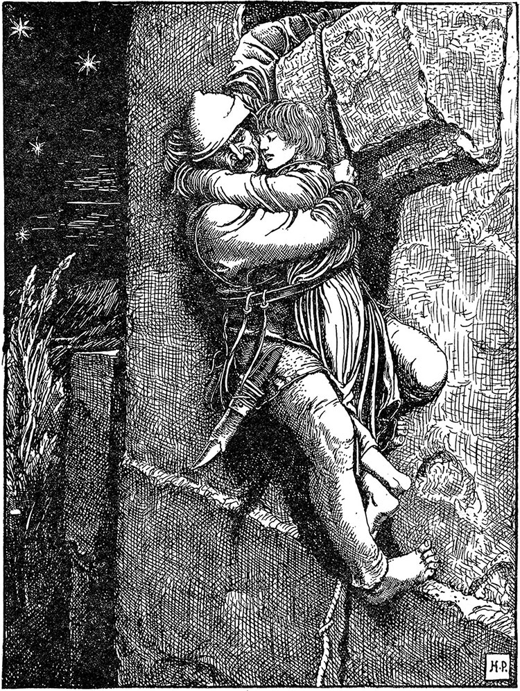 – Да, да, – хрипло сказал Ганс, – это неподходящее место для ребенка. Можешь ли ты подняться, мой маленький хозяин? Ты сумеешь взобраться по веревке с узлами?