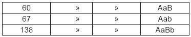 Если обозначить различающиеся признаки опять через А, В, а, b, то были взяты: