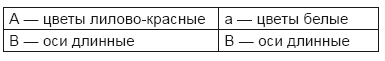 Для дальнейшего испытания были взяты признаки окраски цветка и длины оси, при этом выбор был сделан так, что в третьем опытном году каждый признак должен был проявиться у половины всех растений, если вышеупомянутое предположение правильно. А, В, а, b служат опять для обозначения различных признаков.