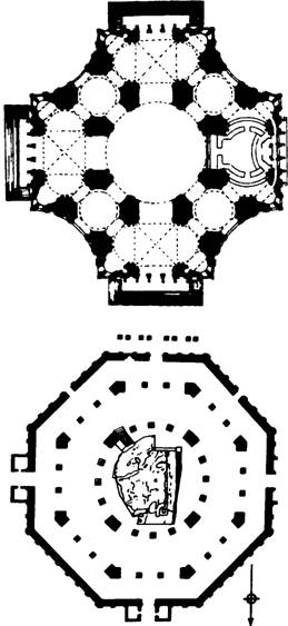 План Рена для собора Св. Павла (вверху) по сравнению с планом Купола Скалы (внизу).