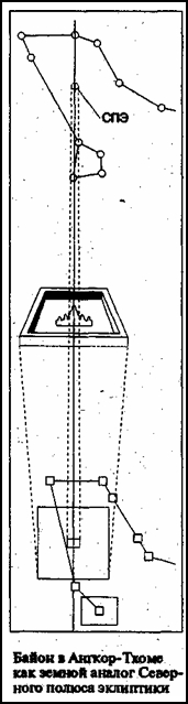 С самого начала не исчезает ощущение, что сам «фундамент» Ангкора с его священными храмами и лично богоцарем постоянно аллегорически «связан» с участком неба, где расположено змеиное созвездие Дракона.