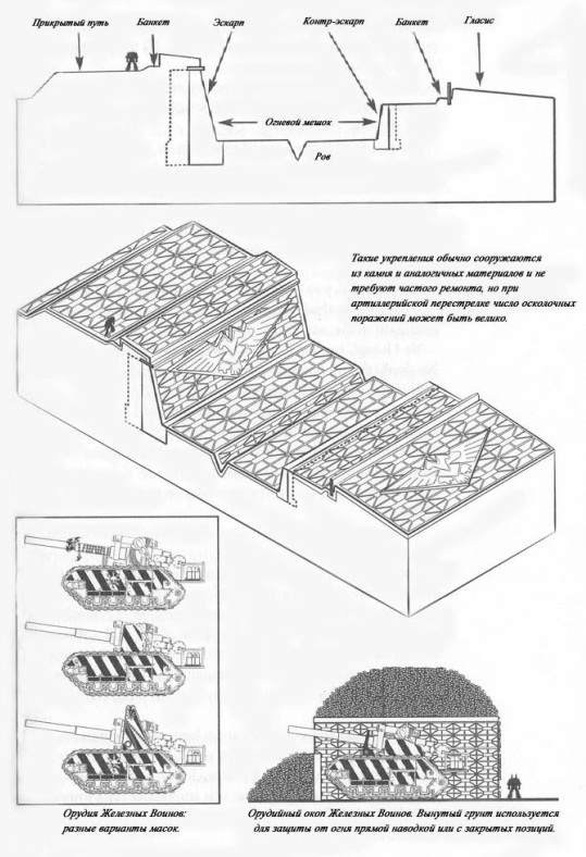 Землеройные машины ничего не могли сделать с адамантием форта и вместо рытья траншей стали сгребать обломки строений и статуй, возводя, таким образом, неровные, но высокие стены, которые образовали зубчатую линию крепостного вала. Теперь никакому врагу не под силу было угрожать основному направлению атаки, которую готовили Железные Воины: для этого защитникам крепости пришлось бы преодолеть систему укреплений, не уступавшую их собственной.
