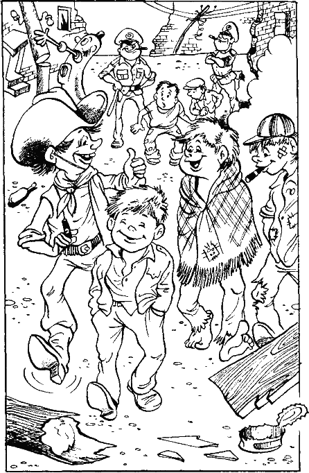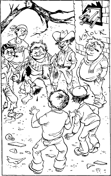 Их обступили мальчишки, готовые наброситься на пришельцев по первому знаку своего главаря.