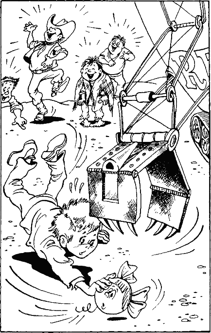 – Теперь, когда без пуговиц ты ни на что не годишься… – сказал Гук и повернулся к своим: – На мусор его!