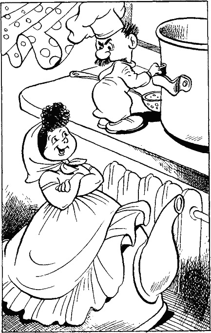 И повар на глазах поражённых судомоек уменьшился в десять раз и превратился в куклу. Могэс вошёл в кухню.