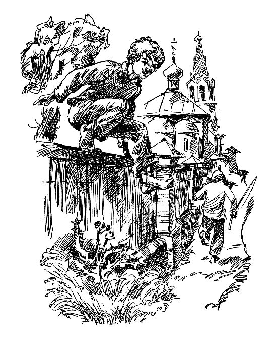 Ребята проходили мимо церкви. За каменной оградой смутно обозначались в зелени кресты на могилах. Тут хоронили покойников духовного звания. Им не подобало лежать на общем кладбище; их клали поближе к церкви.