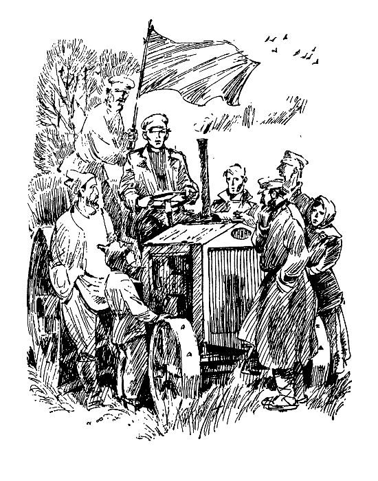– Товарищи крестьяне! Сейчас вы видите чудо техники – трактор. Сделан он на петроградском Путиловском заводе руками тех инженеров и рабочих, которые совершали Октябрьскую революцию. Вы увидите, как работает эта машина, и поймете, что крестьянину выгоднее пересесть с лошади на трактор.