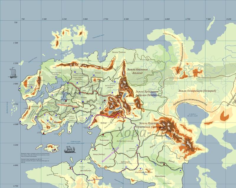 К южным землям принадлежит и загадочный остров Андато (Ушедший (остров) – andato), который находится на значительном удалении от побережья Рей-Пенинсулы. В длину остров достигает величины, на преодоление которой потребовался бы целый день пути, а в ширину – несколько меньше.