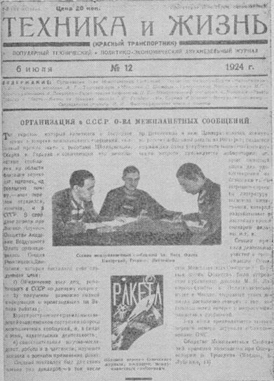 Сообщение об организации Общества изучения межпланетных сообщений в журнале «Техника и жизнь»