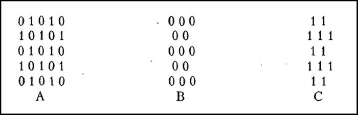 Наука (в современном понимании этого явления) стала развиваться с XVI века. Следовательно, «Этрусское братство» пережило столетия преследования инквизицией думающих и знающих людей. Это далось очень непросто. Членам тайного общества приходилось переписываться друг с другом с помощью тайнописи [23]: «Представьте себе шахматную доску размером пять на пять клеток с черно-белыми полями («0» обозначает белый цвет; «1» – черный).