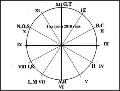 1 августа 2010 года буквы на циферблате займут позиции (рис. 13):