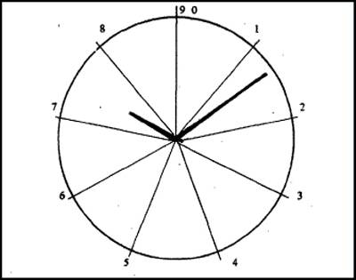 На рис. 19 арабо-индийская система счисления показана в виде циферблата: 360 градусов полного оборота стрелки разбиты на 9 отрезков по 40 градусов. Чтобы зафиксировать любое число, потребуются стрелки единиц, десятков, сотен и механизм, согласующий движение стрелок.