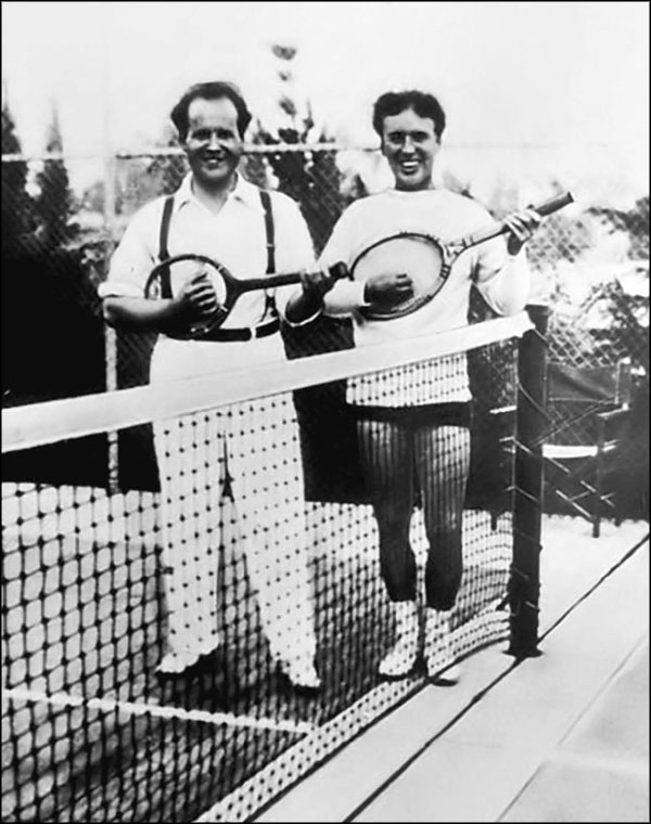 Тот самый забавный снимок, где Сергей Эйзенштейн и Чарли Чаплин «бренчат» на теннисных ракетках.