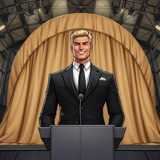 Он вышел на сцену под оглушительные аплодисменты, которые, казалось, могли вызвать небольшое землетрясение. Он выглядел безупречно. До тошноты. Идеально скроенный костюм, белоснежная рубашка, лёгкий загар, белозубая улыбка, способная продать снег эскимосам, а пламя – жителям ада. Он излучал уверенность, силу и такое концентрированное высокомерие, что воздух вокруг него, казалось, становился плотнее и холоднее.