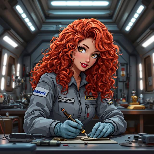 Она была в своей стихии. Рыжие волосы, собранные в небрежный хвост. Привычный комбинезон, немного испачканный маслом. На щеке красовалось живописное пятно сажи.