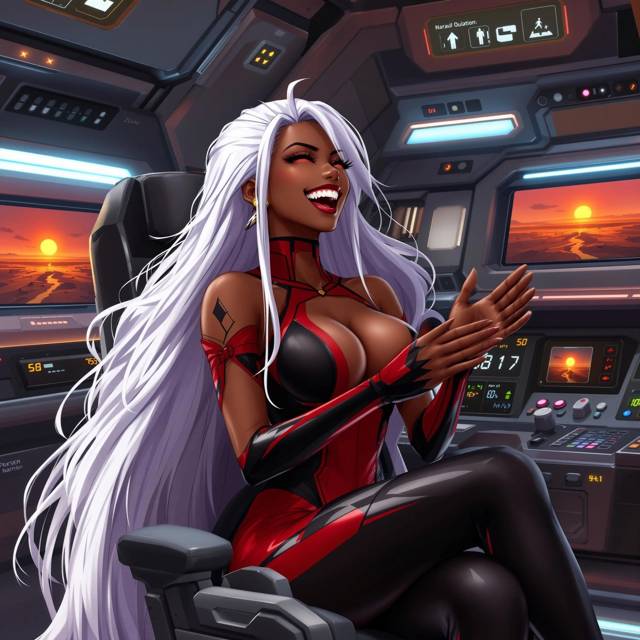 Она смеялась так, как я никогда не слышал. Не её привычный язвительный смешок или холодная усмешка. Чистый, незамутнённый, истерический хохот. Она запрокинула голову, и слёзы текли из её алых глаз, оставляя на щеках влажные дорожки.
