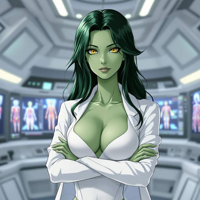 Её кожа мягко светилась, отбрасывая на хромированные поверхности изумрудные блики.
