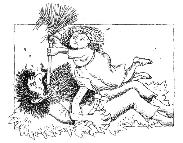– Палец слишком короткий, – выкрикнула она, сбегала в пещеру за метлой и засунула ручку метлы разбойнику в глотку. Тогда вторую порцию мухоморов удалось выплюнуть. Но первая уже успела перевариться, и яд растекался по организму.